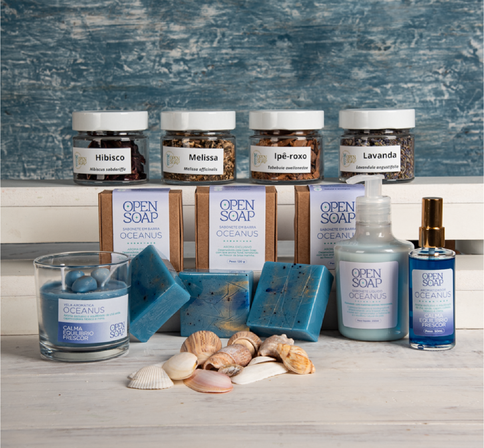 A Linha Oceanus combina um conjunto exclusivo de extratos vegetais ricos em propriedades hidratantes, calmantes e antioxidantes, que cuidam da pele enquanto promovem sensação de bem-estar. Seus aromas unem notas cítricas, herbais e amadeiradas, criando um clima de frescor, equilíbrio e tranquilidade em qualquer ambiente. A presença das vitaminas A e C reforça a proteção e a vitalidade da pele, enquanto a cor azul — inspirada na cromoterapia — intensifica a paz e o relaxamento. Oceanus é uma experiência completa de cuidado, leveza e serenidade.