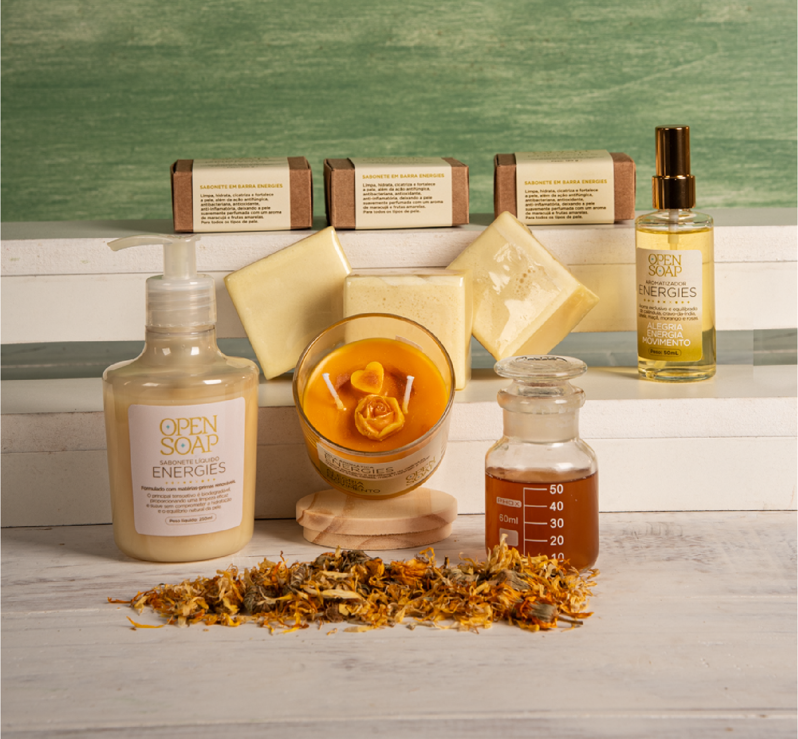 A Linha Energies foi criada para despertar vitalidade, conforto e equilíbrio através de fragrâncias que combinam notas adocicadas, florais, frutadas e especiadas. Seus produtos unem extratos vegetais com propriedades hidratantes e calmantes, oferecendo cuidados que renovam a pele e também o emocional. O aroma característico da linha traz sensação de aconchego e leveza, ideal para quem busca harmonia no dia a dia. A cor amarela, presente na proposta sensorial, simboliza energia, otimismo e bem-estar.